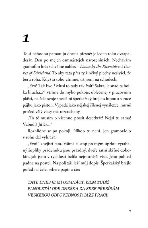 Eva Olmerová – divoká duše českého jazzu. Její cesta začala v rodině prvorepublikového diplomata, vinula se mezi pražskou uměleckou elitou a vedla až k?velkým úspěchům i krátké éře v divadle Semafor. V?této novele ožívají její bouřlivé vztahy, bolestné rozchody i střety se státní mocí, kvůli...