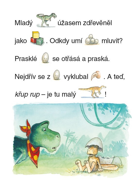 Samostatně i s pomocí rodičů mohou mladší děti vstoupit do světa obrázkového čtení s úsměvným příběhem tyranosaura Rexíka. Protože Rexík zdaleka není tak hrozivý, jak se o tyranosaurech tvrdí, snadno se spřátelí s mírumilovným dinosaurem Oskarem. Ovšem pravěký svět nikdy není tak docela bez...