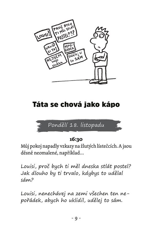 Louisův život se obrátí vzhůru nohama. Když jeho otec přijde o práci a stane se z něj muž v domácnosti, musí Louis čelit nepoživatelnému jídlu a všudypřítomným žlutým lístečkům se vzkazy, aby si uklidil pokoj. Jako by nestačilo, že ve škole lítá z jednoho průšvihu do druhého, hned po prvním...