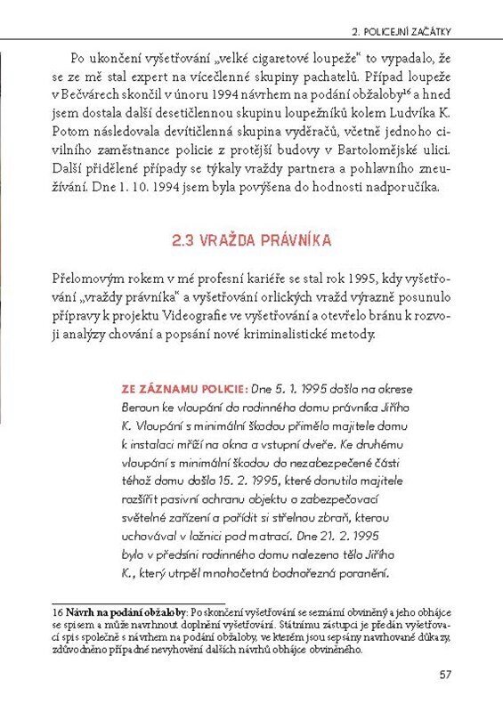 Absolvovala studijní pobyty u FBI a Kanadské královské jízdní policie. Podílela se na vyšetřování nechvalně proslulých Orlických vražd. Za více než třicet let své kariéry pomáhala objasnit stovky vražd, loupeží i znásilnění. Jiřina Hofmanová je legendou české kriminalistiky. Ve vzpomínkách na...
