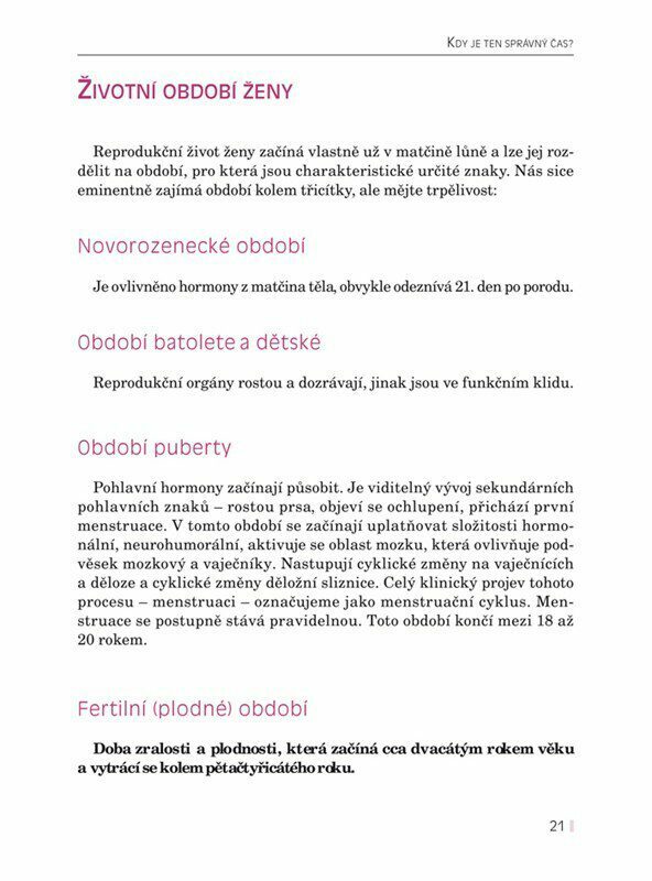 Bylo vám 30, 35, 40… a chcete mít dítě? Máte tak trochu strach, zda bude všechno v pořádku? Nebudete typická 'starší' matka? Česká autorka ve spolupráci s lékařkou napsala tuto knihu pro ženy, které začíná znepokojovat tikot biologických hodin. Doporučená strava a aktivity pro zvýšení plodnosti,...