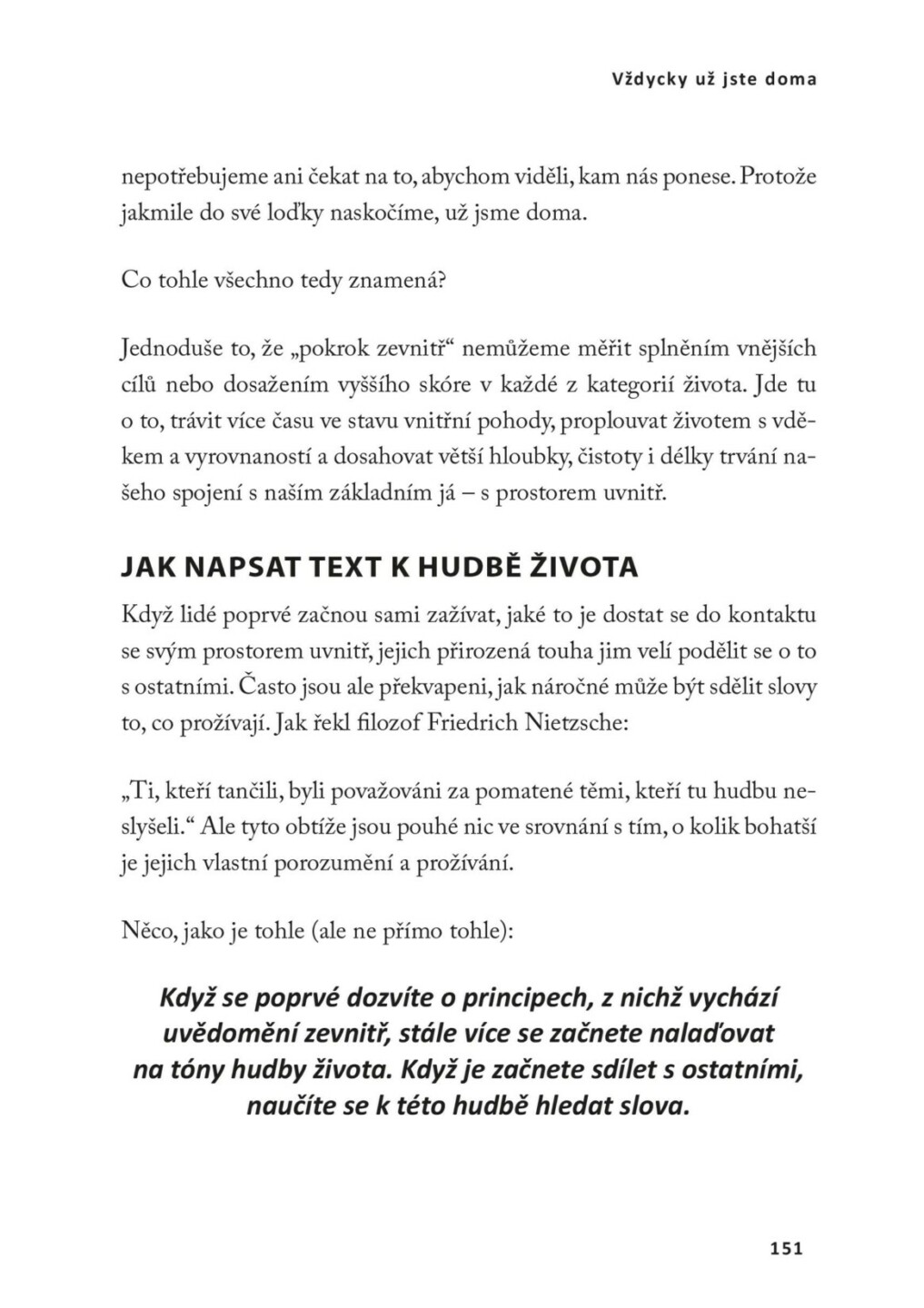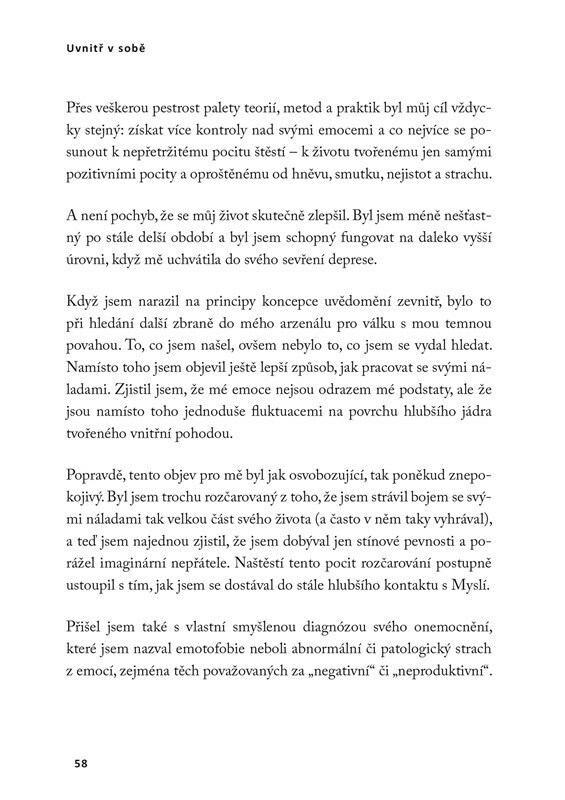 Všechny naše životní problémy jsou výsledkem toho, že ztrácíme směr a zamotáváme se do svého vlastního myšlení. Řešením všech těchto problémů je pak najít cestu zpět „domů“. A k tomu vám pomůže kniha Uvnitř v sobě. Každý má totiž uvnitř v sobě prostor, ve kterém je dokonalý, celý, šťastný....