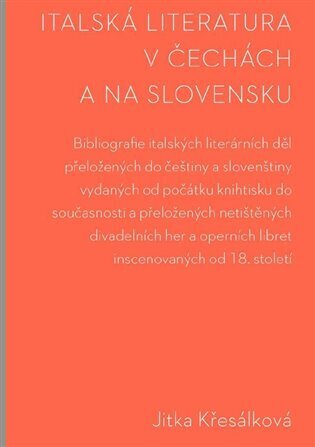Bibliografie literárních překladů z italštiny je rozdělena do dvou oddílů. První část obsahuje tištěné překlady italské prózy, poezie a divadelních her včetně libret, od prvotisků až po současnost (do r. 2015 včetně, částečně 2016). Zachycuje všechny přeložené