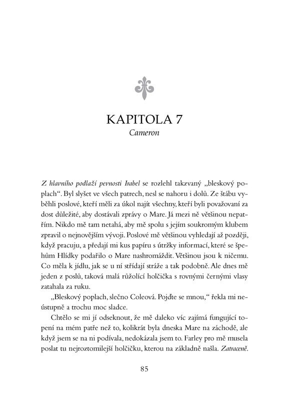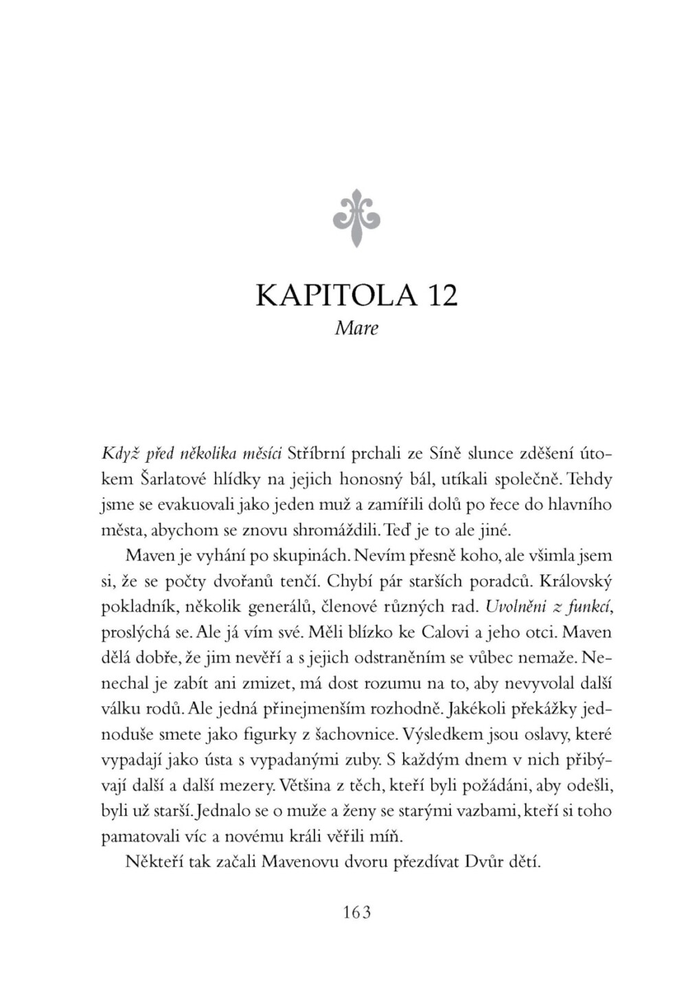 Mare zůstává v zajetí, zbavená svého blesku a mučená vlastními chybami. Přežívá jen díky milosti nového krále. Kluka, jehož milovala, ale vyklubal se z něj lhář a zrádce. Zatímco je v paláci, tak se její skupina povstalců připravuje na válku, protože už nechce žít ve stínu. A pak je tu Cal,...