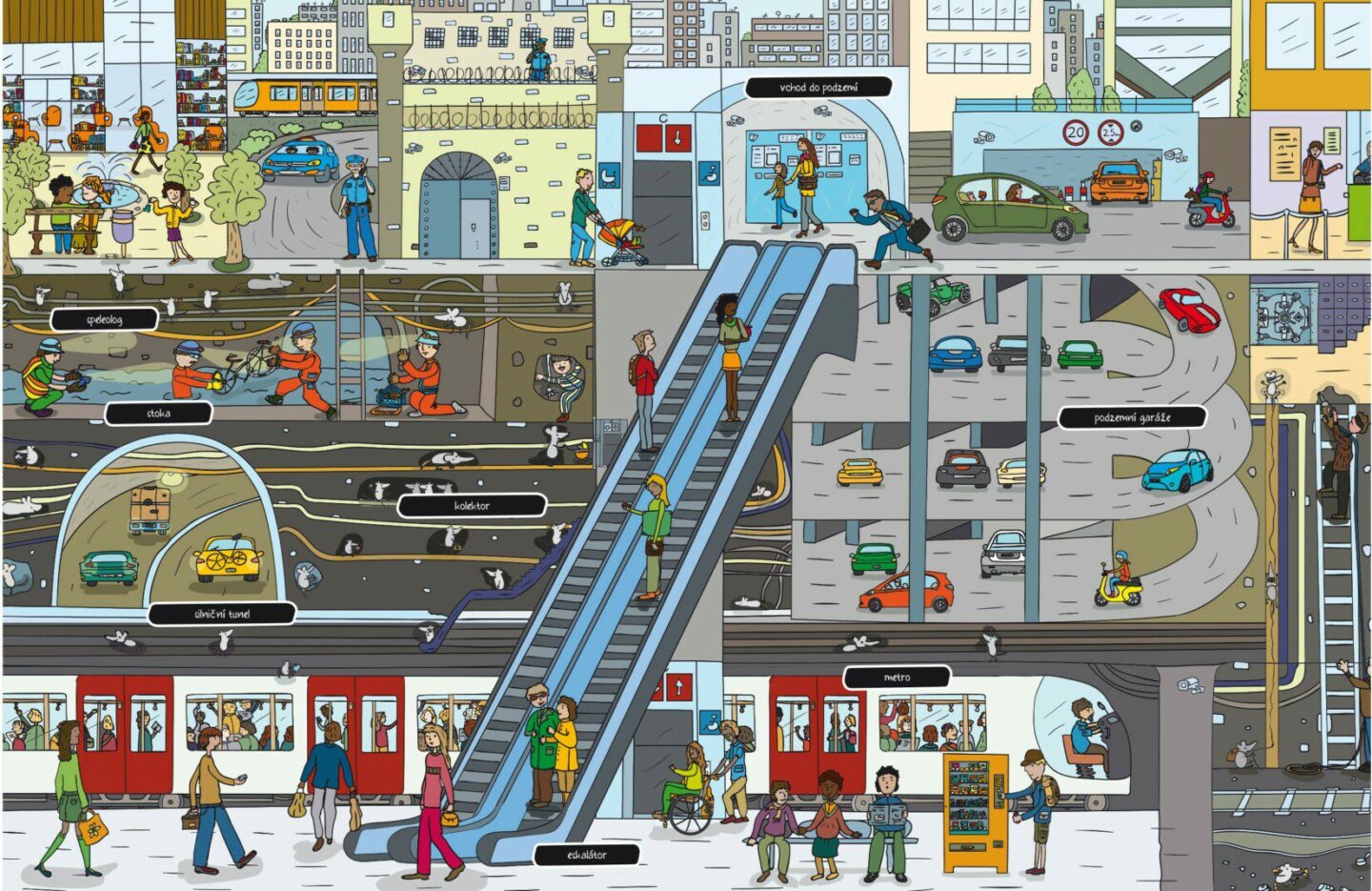 Jak si představuješ život v podzemí? Jako černočernou hlínu a chlad? Tak to se tedy pleteš! V podzemí je totiž pěkně rušno. Zvířata, rostliny, garáže, sportoviště i galerie. Nevěříš? Pojď se mnou dolů. Nádherné ilustrace a podrobné informace ze světa tam dole tě jednou provždy vyvedou z...