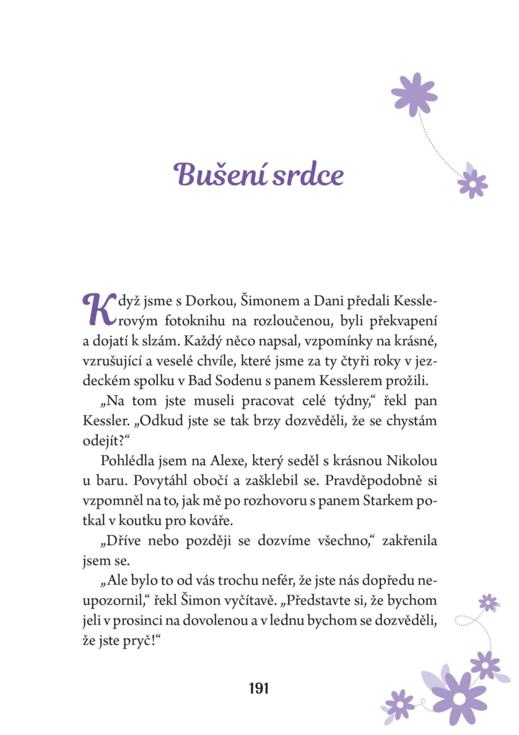 Won Da Pie konečně přijel do nového domova! Šarlota se nemůže dočkat, až svého koně snů ukáže kamarádkám. Zdá se ale, že jí Inka nově nalezené štěstí nepřeje. A není jediná. Krátce před jezdeckou zkouškou zničí neznámý pachatel Šarlotino sedlo. Když se pak po čase objeví tajemný anonym, má...