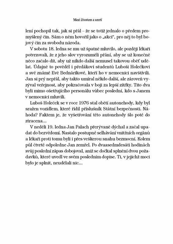 Janovy smysly otupila šílená bolest, prostupující celým jeho tělem. Nevnímal křik ani paniku kolem sebe. Někdo zavolal záchranku a on jen stačil popálenými ústy tiše vyslovit pár vět o tom, aby si lidé přečetli dopis, který nechal u fontány před Národním muzeem. Potom se celý svět rozplynul v...