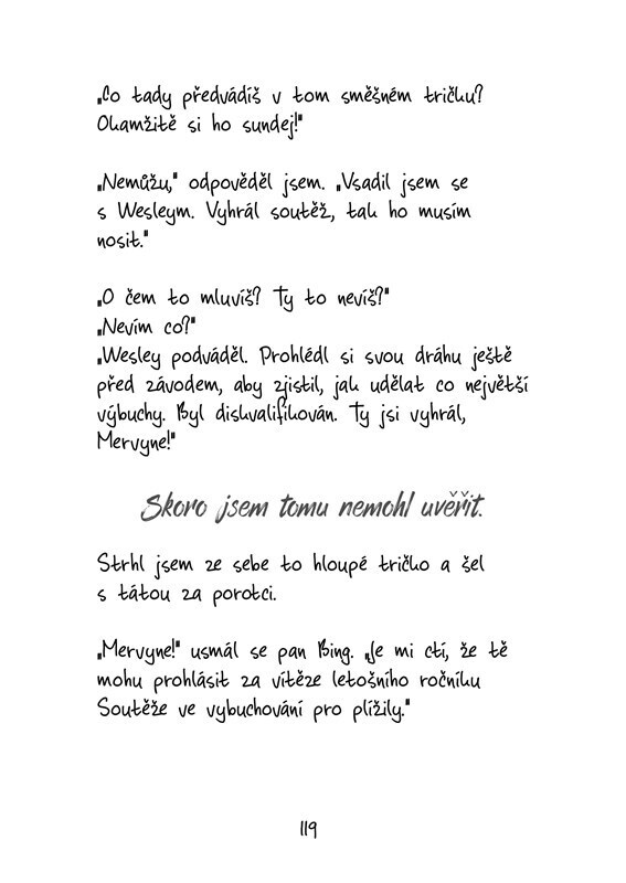 Každý to ví. Plížilové v Minecraftu explodují. Pro Mervyna to ale znamená víc. Chce se vyrovnat svému otci, šampionovi v každoroční soutěži ve vybuchování. Aby to neměl tak jednoduché, musí se kromě nátlaku ze strany rodiny vypořádat i s výsměchem svého hlavního konkurenta. V zábavném a...