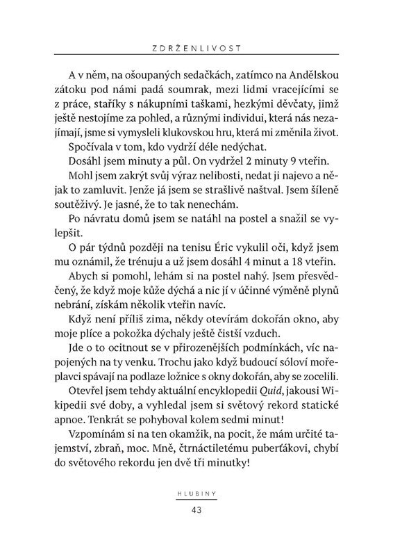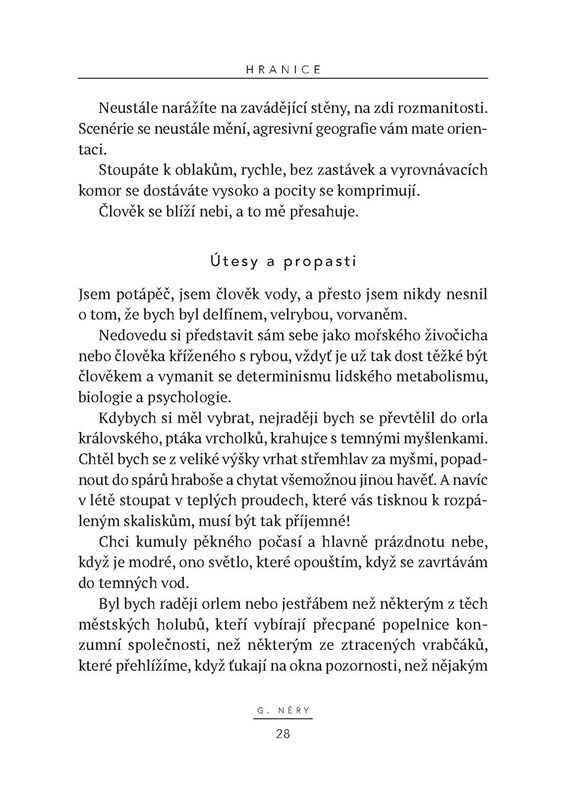 Život člověka se odehrává mezi jeho prvním nádechem a posledním výdechem. Ponory Guillauma Néryho jsou časové intervaly mezi jeho posledním výdechem a prvním nádechem.Kniha slavného potápěče nám umožňuje ponořit se do jeho tréninku, výkonů, technických obtíží, které musí překonávat. Potápění je...