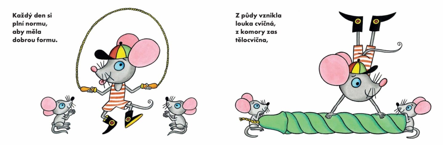 Půvabné a nadčasové leporelo Heleny Zmatlíkové znovu vychází po dlouhých padesáti letech! Veršovaný příběh myšky, která sportuje s takovým zápalem, až se jí stane osudným, ze slovenštiny přebásnil osvědčený Josef Brukner.