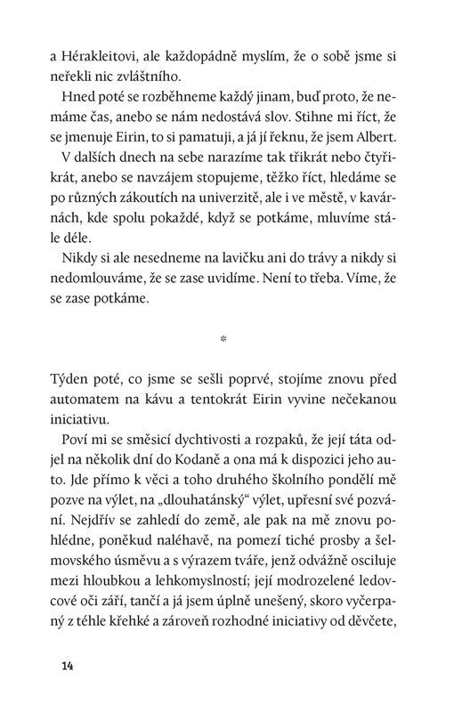 První den na univerzitě potkává Albert u automatu na kávu dívku Eirin. Po třiceti sedmi letech spokojeného společného života obdrží Albert neblahou zprávu, se kterou se musí vyrovnat. Eirin zrovna není doma, a tak Albert impulzivně odjede na chatu u jezírka, kde se během 24 hodin pokusí sepsat...
