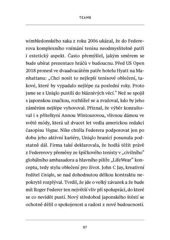 Roger Federer. Hvězda, která zásadně ovlivňuje bílý sport skoro dvacet let. Jeho schop¬nost adaptovat se na nové trendy ve vybavení, taktice, ale i na mladší soupeře, odhodlané a zatím nezatížené jeho silou neporazitelného šampióna, zaslouží obdiv. Přitom nežije jen životem sportovce. Angažuje...