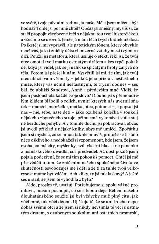 Co je to rodina a co ji drží pohromadě? Aldovo a Vandino manželství prošlo hned v počátcích těžkou zkouškou. Přetrvalo, je však plné trhlin a stále otevřených ran, o nichž postupně promlouvají oba manželé i jejich dvě děti. Každý z nich jako by ale vyprávěl jiný příběh. Každý má svou pravdu,...