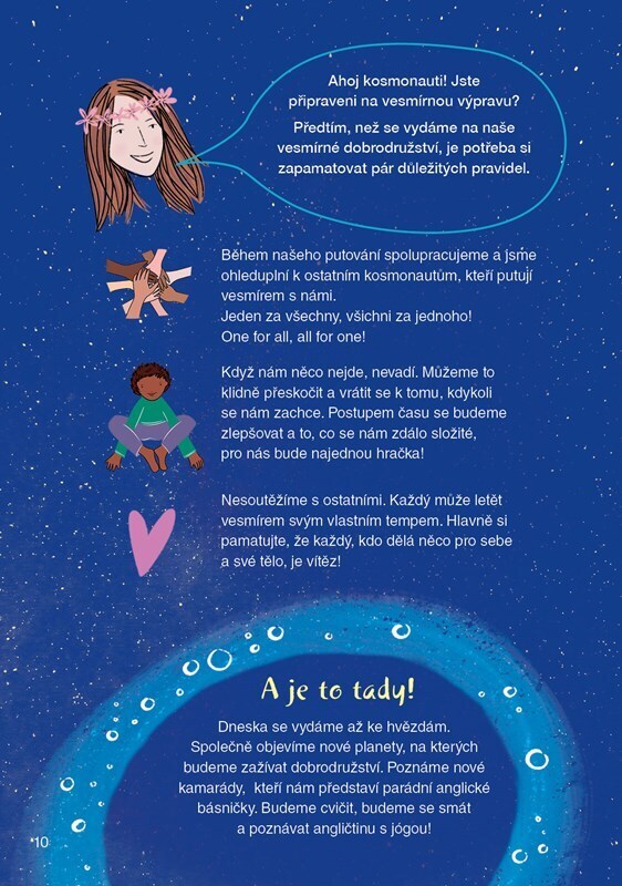 Vydejte se s námi na vesmírné dobrodružství. Poletíme na létacím koberci i v raketě a poznáme spoustu nových světů. Seznámíme se s kamarádskými zvířátky, která nás s pomocí názorných obrázků a jednoduchých básniček naučí cvičit jógu. A to není všechno! Básničky jsou v češtině a v angličtině,...