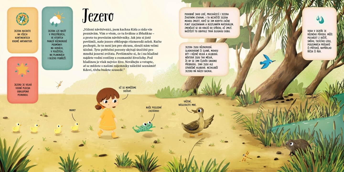 Seznamte se s různými typy vodních toků a také s rostlinami a zvířaty, které je obývají, pomocí naší party zvířat. Jsou na cestě za svým životním dobrodružstvím: chtějí se vrátit domů, odkud pocházejí. Ale co když neví, kde jejich domov je? Naštěstí je tu Anička. Ta jim pomůže objet různé vody...
