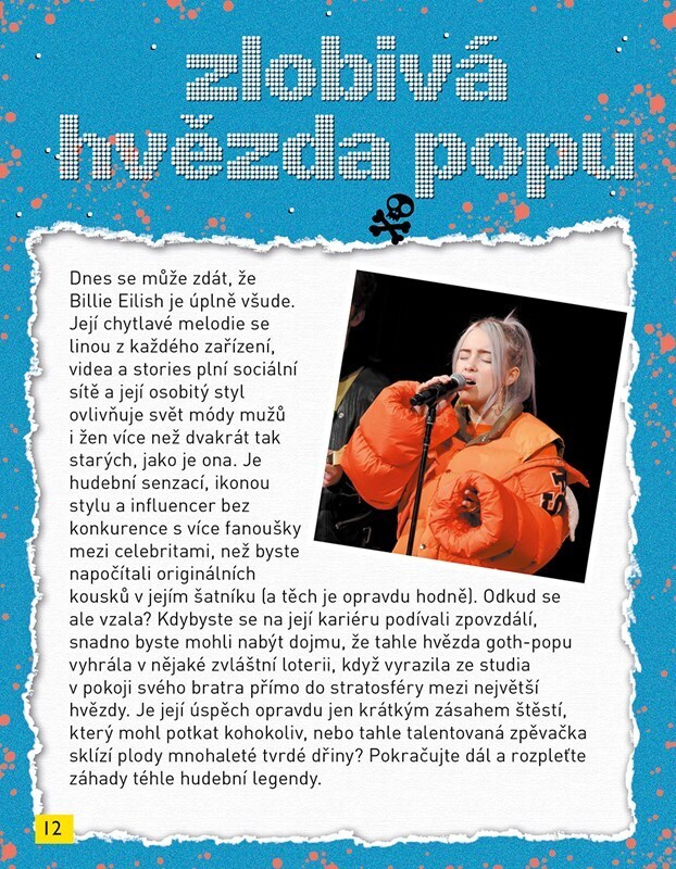 Billie Eilish vzala svět pop music útokem. Její hudba má jasný názor, její styl je jedinečný, její texty nenechají nikoho chladným. Ve fanknize najdeš spoustu úžasných faktů o Billie, kvízy i zákulisní informace, které ti nesmí uniknout. Dostaň se této hudební megastar pod...