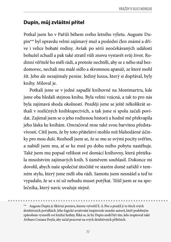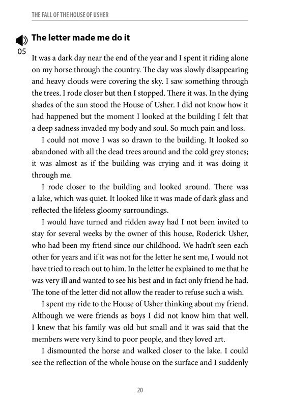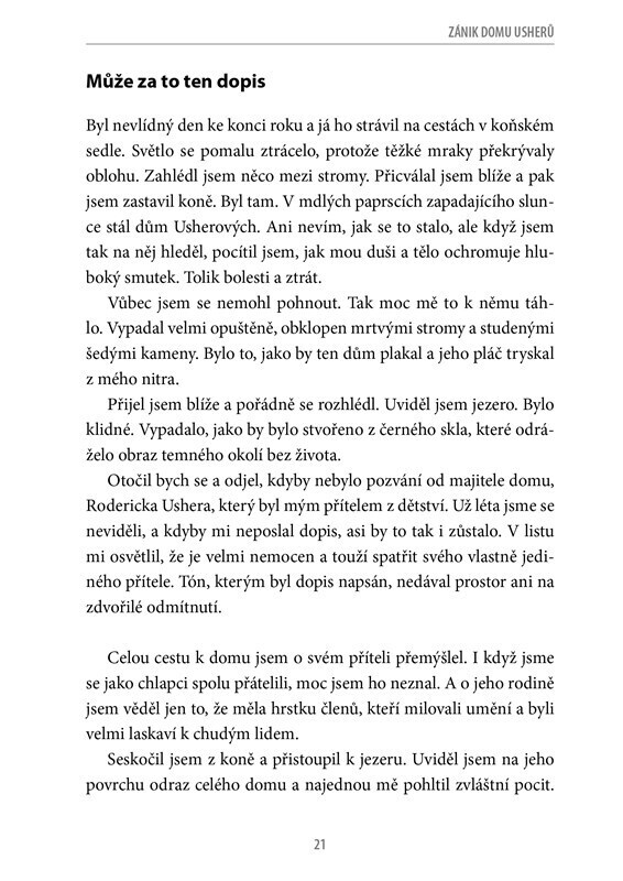 Publikace nabízí nejznámější povídky Edgara Allana Poea, mistra a průkopníka hororové literatury: Černý kocour, Zánik domu Usherů, Maska rudé smrti, Jáma a kyvadlo, Vraždy v ulici Morgue. Příběhy jsou zpracovány pro mírně pokročilé studenty angličtiny. Český zrcadlový překlad čtenářům umožní...