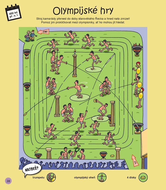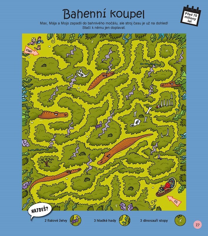 Vydej se s Maxem, Májou a psem Mojem na cestu v čase! V muzeu totiž objevili opravdový stroj času a ten je zanesl hluboko do minulosti. Jestli se přidáš, prohlédnete si společně dinosaury, střetnete se s římskými gladiátory nebo se seznámíte s velikány naší historie. Chceš jít do toho? Tak...