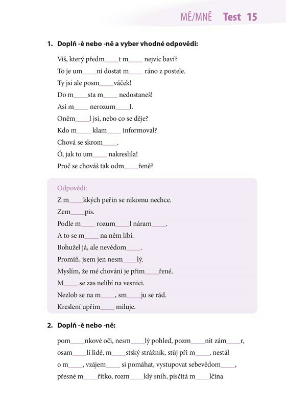 Správné použití -ě nebo -je ve větách je nejen důležité pro dobrou známku z písemky, ale může zabránit i nedorozumění, které by vzniklo kvůli změně významu slova. Desetiminutovky jsou určené každému, kdo si potřebuje v pár minutách prověřit své znalosti. V knize najdeme velké množství materiálu...