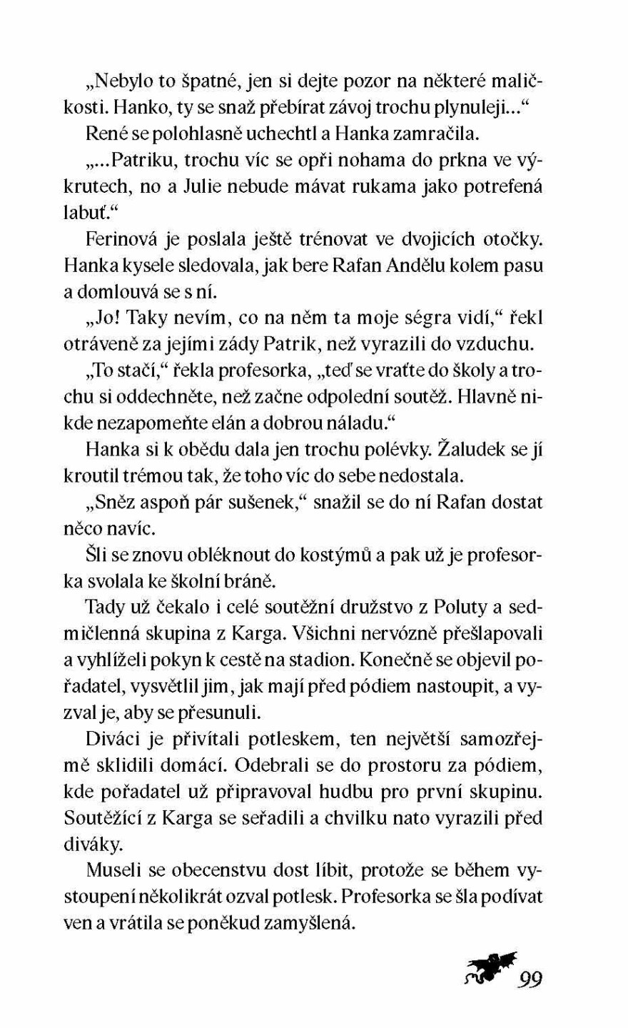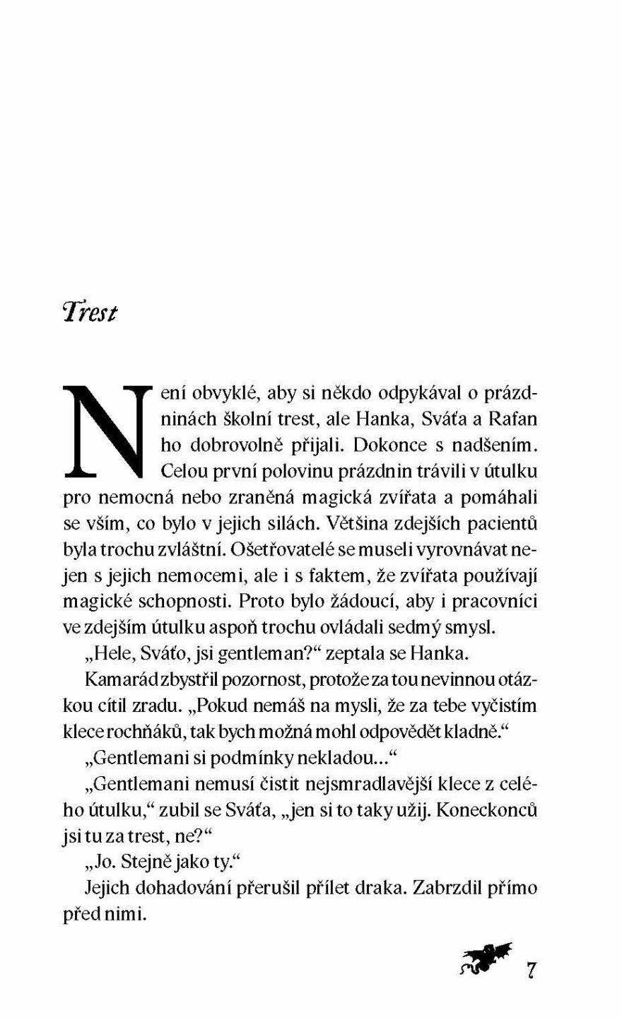 Naši přátelé – Hanka, Sváťa a Rafael tráví část prázdnin v útulku pro nemocné magické tvory, kde si odpykávají školní trest. Trest přijali dobrovolně a s nadšením. Práce jim nevadí a čas s nimi tráví i Hančin dračí bratr Plam. Rafan musí absolvovat zkoušku a je přijat do školy v Santareně. Nový...