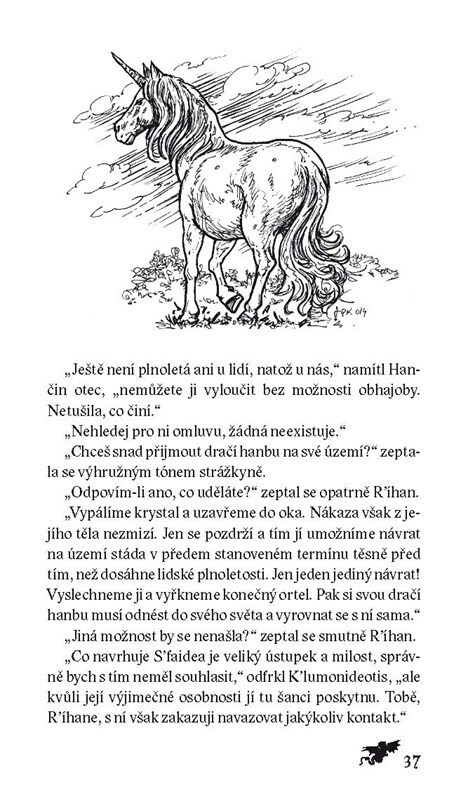Zářivé kamínky zasazené do kůže – na čele, v uchu, na rukou, kam si usmyslíte. Krása! Jaké nebezpečí to ale přináší? Hanka si nechala jeden zasadit. Jednorožci s ní přestali mluvit, draci jsou zděšení. Nikdo ale neví proč. Pátrání je náročné a vede k děsivým poznatkům. Kdo bude muset zemřít?...