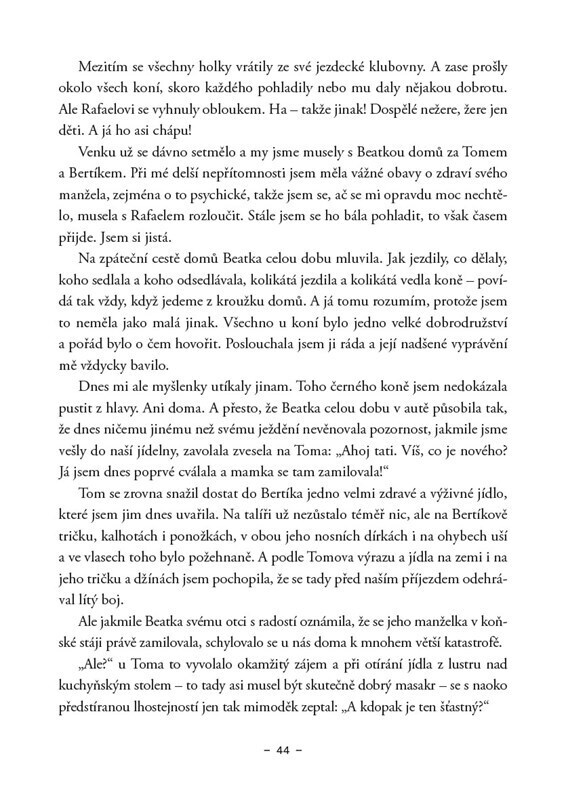 Anežčina bláznivá jízda pokračuje! Ze života na mateřské už jí začíná jít hlava kolem, a tak nutně potřebuje změnu. Bude kýženým rozptýlením práce s malými špunty ve školce nebo návrat k její dětské lásce – ke koním? Jisté je, že jedno i druhé jí přinese perné i veselé chvilky, a taky důležité...
