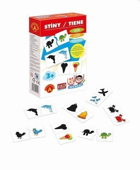 obrázky a stíny pomáhá dětem poznávat a pojmenovávat jednotlivé věci nebo zvířátka na kartičkách.Hra STÍNY se skládá ze 48 dílků (24 různých destiček). Jedna polovina obsahuje obrázek a druhá půlka tmavý stín. Tvar stínu se shoduje s obrázkem, na odpovídající druhé