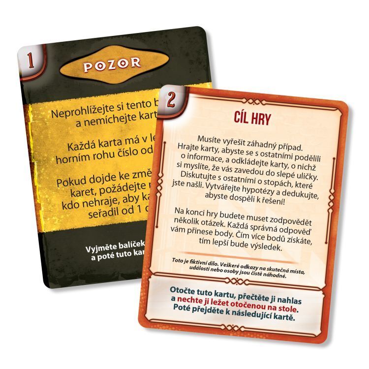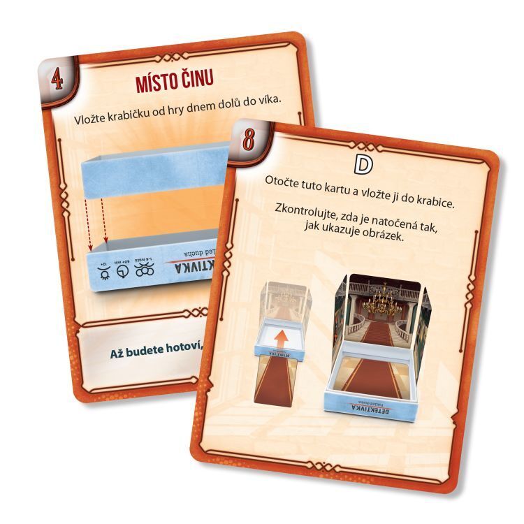 Vydejte se po stopách zločinu! Hledejte důkazy v 3D prostředí, vytvořeném z karet ve hře Detektivka. Začněte hrát bez čtení pravidel - hra vám postupně na kartách říká, co se stalo a jak postupovat. Obsahuje: 62 karet, 7 barevných sponek.