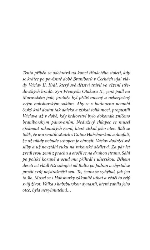 Román z počátku čtrnáctého století se odehrává za vlády krále Václava II. Popisuje jeho cestu, která pozvedla České království a udělala z něj politickou velmoc. Václav získává polskou korunu a brzy nato i uherskou.Zároveň však chápe, že střet s Římskou říší je...