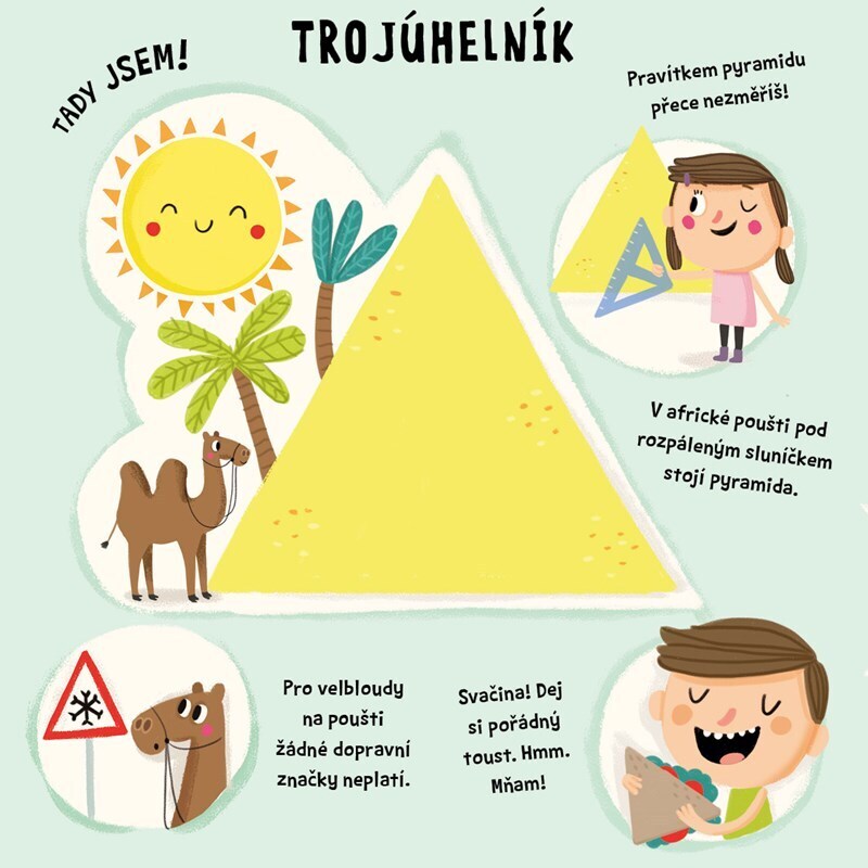 ČTVEREC, KRUH, OBDÉLNÍK A TROJÚHELNÍK. To jsou tvary, které najdeš všude kolem sebe. Okno má tvar čtverce, neposedné jojo je kulaté jako… no přece kruh. Tabulka mléčné čokolády vypadá jako obdélník a kousek sýra, který tak chutná malé myšce, má tvar trojúhelníku. Na stránkách této knížky se malí...