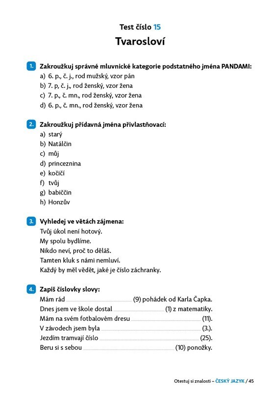 Ahoj holky a kluci! Máte rádi výzvy? Chcete zjistit, co vám jde, a kde je třeba trošku přidat? Otestujte sami sebe a vše se dozvíte! Testové úlohy z učiva českého jazyka jsou připraveny tak, aby pokryly všechna témata, o kterých se v 5. třídě učíte. Vyhodnocení testů najdete v klíči na konci...