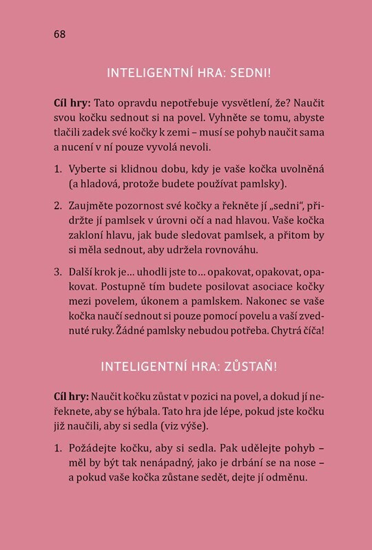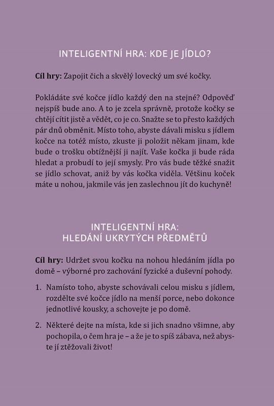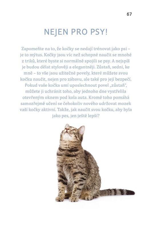 Knížka o tom, jak procvičovat inteligenci vaší ušlechtilé spolubydlící. Jak se kočky učí, co dovedou, proč si tak rády hrají? A je pravda, že se kočky nedají vycvičit? Kniha plná informací pomůže protáhnout mysl i končetiny vám oběma.