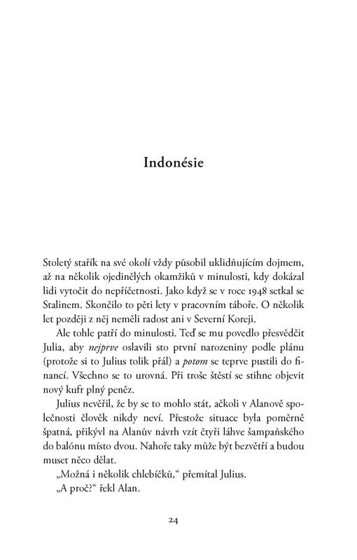 Přesně před rokem utekl stoletý Alan Karlsson z domova důchodců v Malmköpingu. Teď si se svým přítelem Juliem užívá života na Bali. Tedy až do chvíle, než se Julius rozhodne připravit Alanovi oslavu narozenin. Horkovzdušný balon, kterým si chtějí vyrazit, totiž odletí bez pilota a Alan s Juliem...