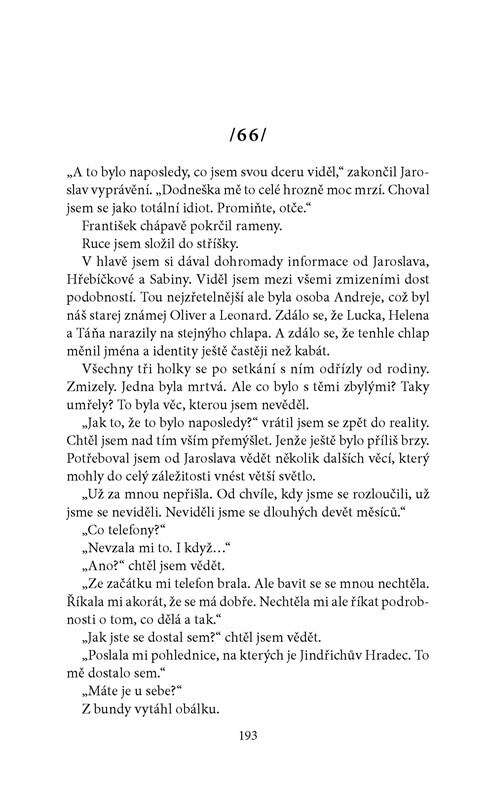 Když soukromého vyšetřovatele Matěje Mlynáře osloví neznámá žena, jíž zmizela dcera, pustí se do dalšího případu. Zatímco pátrá po pohřešované dívce, ulicemi města se plíží zlo – kdosi se neštítí dokonce ani rituální vraždy novorozenců. Mlynář neznámé hrozbě sám čelit nedokáže. Spolu s parťačkou...