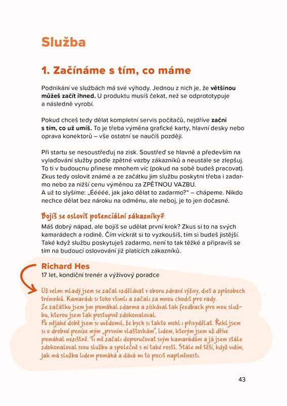 Chceš začít s podnikáním, ale nevíš jak? Pročítáš spoustu příruček, ale všechny ti připadají složité a dlouhé? Autoři této moderní a svižné knížky ti a vtipně ukáží, jak rozjet první projekt – od nuly, skoro bez peněz.