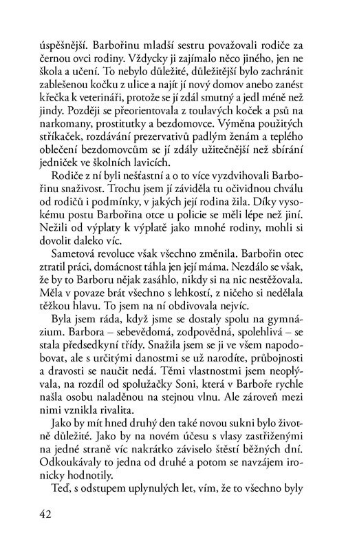 Aneta má nepříjemné tušení, že v jejím manželství něco nehraje. Ráda by zjistila příčinu, ale musí zároveň řešit problémy v práci a těžko zvladatelnou pubertální dceru. Zničehonic dostane od staré známé pozvánku na sraz. Proč se má čtveřice kamarádek sejít po tolika letech? Zdá se, že všechny...