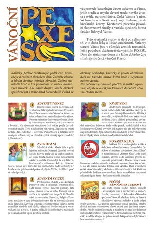 Jednotlivé obrázky a přiložené texty srozumitelně a jednoduše přibližují dětem pojmy, které jsou spojené s vánoční tématikou. Část obrázků představuje různé lidové i křesťanské symboly vánoc. Na dalších obrázcích jsou vyobrazeny výjevy a osoby, podle nichž se děti nenásilným způsobem seznamují s...