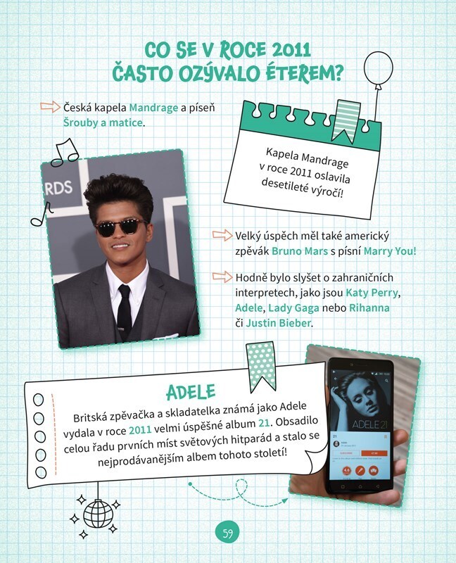 Chceš vědět, co zajímavého se stalo doma a ve světě v roce 2011? Tedy pochopitelně kromě toho, že ses v něm narodil právě TY! Zajímalo by tě, co tehdy děti četly, jaké filmy sledovaly a jakou poslouchaly hudbu? Anebo co frčelo na sociálních sítích? ... Ale počkat, byly už tehdy sociální sítě?! A...