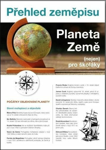 jezerem... Vše doprovází přehledné tabulky s rekordy jednotlivých světadílů a názorné barevné obrázky. Přehled je skladný, takže ho snadno přibalíte do školní tašky, kde nezabere téměř žádné místo. Ocení ho především žáci 2. stupně základních škol a víceletých