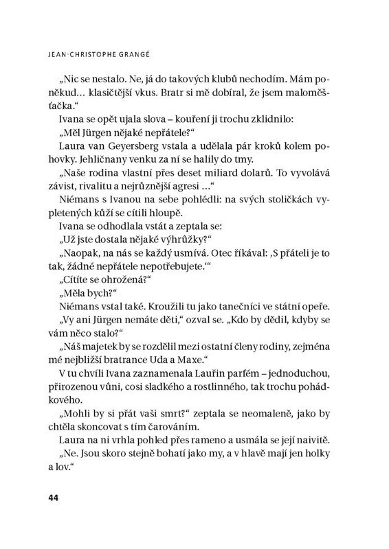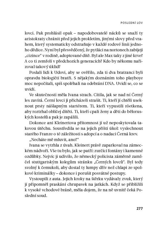 V německém pohoří Schwarzwald najdou dva lovci znetvořenou mrtvolu Jürgena von Geyersberga. Kdosi bohatému švábskému dědici uřízl hlavu a vykastroval ho. Na místo činu je povolána specializovaná dvojice vyšetřovatelů: Pierre Niémans a Ivana Bogdanovićová. Případ je zavede až na stopu Černých...
