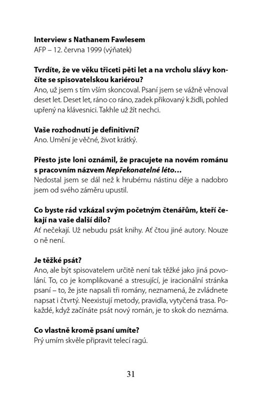 Nikdo netuší, proč se Nathan Fawles po třech úspěšných románech stáhl do ústraní a ukrývá se na ostrově ve Středomoří. Údajně už nemá co říct. Novinářka Mathilde je ale přesvědčena, že spisovatel je součástí příběhu, který je nutné vyprávět… Jejich setkání rozplétá osudy propojené ukradeným...