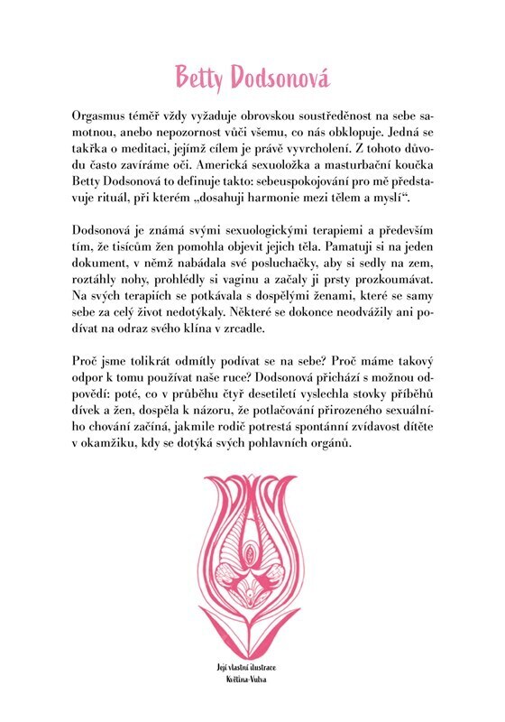 Maria Hesse, ilustrátorka a autorka úspěšných ilustrovaných životopisů, vás zve, abyste odhodily ostych, prozkoumaly své tělo a nahlédly pod roušku ženské sexuality. V této vizuálně jedinečné knize se na pozadí autorčina osobního příběhu dozvíte spoustu zajímavých informací o anatomii ženského...