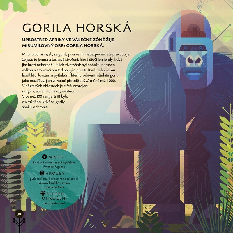 Impozantní lední medvědy, nosorožce, gorily, vesele vyhlížející papuchalky, roztomilé činčily, nádherně barevné papoušky ara a mnohé jiné druhy zvířat možná brzy uvidíte už jen na stránkách této či jiných knih. Všem totiž hrozí ve volné přírodě naprosté vyhynutí. Ochránci zvířat po celém světě...