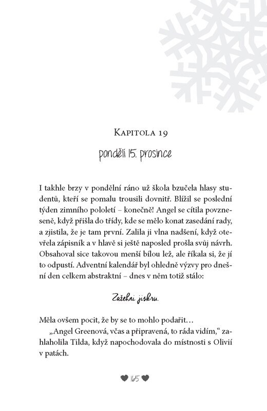 Už jsou skoro Vánoce, ale Angel neslaví – má moc práce se školou, a navíc ještě organizuje benefiční akci na pomoc místnímu hospici. Parťákem při plánování se ji stane Caspar – kreativní, zábavný a pohledný spolužák, který je ale naprosto nespolehlivý. Díky bohu za tajného Santu, který jí posílá...