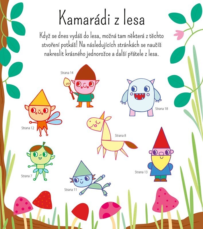 Skvělá kniha po všechny malé malíře! Umíš nakreslit kruh, čtverec a trojúhelník? Pak se pomocí jednoduchého návodu naučíš snadno vytvořit téměř 40 překrásných jednorožců, nadpřirozených bytostí, roztomilých zvířátek, nádherných zámků či kouzelných dopravních prostředků. V knížce také najdeš...