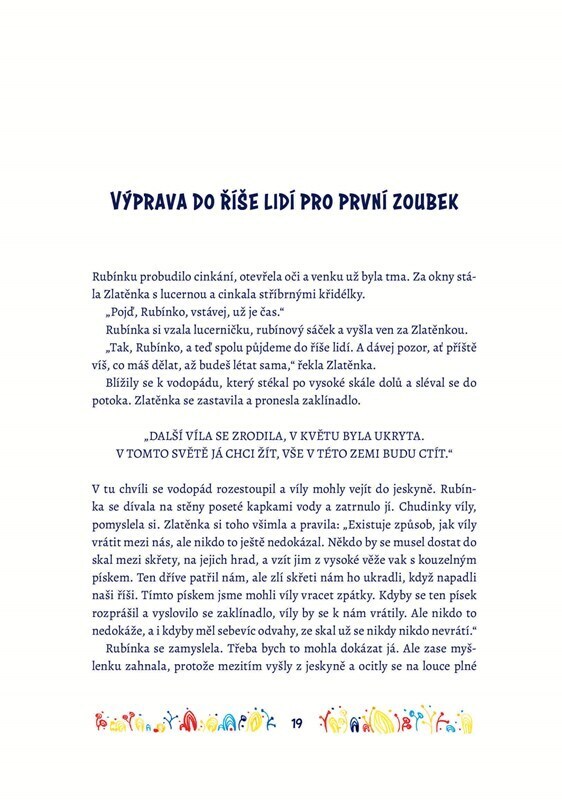 Víla Rubínka přišla na svět z rubínové květiny. Patří mezi zoubkové víly, které do země lidí létají pro dětské zuby. Ale Rubínka má ještě jeden úkol. Kouzelnou zemi totiž napadli zlí skřeti, kteří zakleli její kamarádku Zlatěnku a navíc už roky drží ve vězení krále skřítků. Dokáže je statečná...