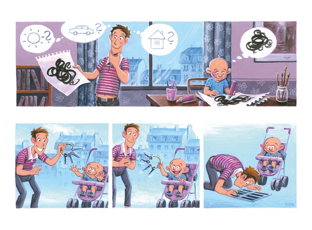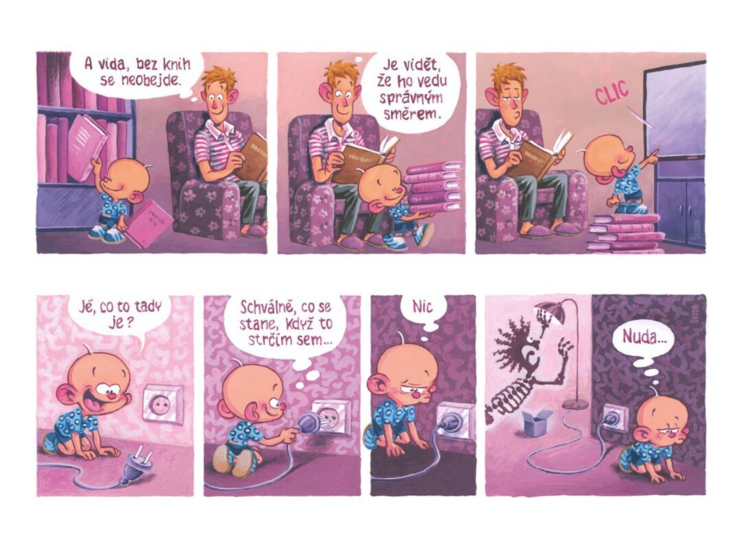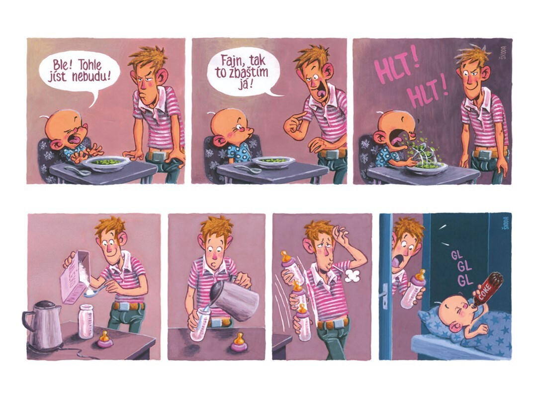 Můj táta a já jsme vážně v pohodě. Fakticky. Když se nudím, zakřičím a on hned přiběhne s lahvičkou a začne kolem tancovat. Občas mě uspává v autě a přitom mluví cizími jazyky, hlavně když zprudka zabrzdí mně pro radost. Někdy zkouším po něm opakovat a on vždycky zčervená pýchou! Táta je taky...