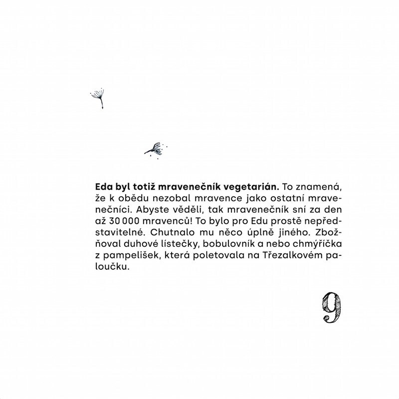 Mravenečník Eda zjistí, že aby byl opravdu šťastný, musí být sám sebou. Proto všem zvířátkům v lese prozradí své největší tajemství – Eda mravence nejí, Eda se s mravenci kamarádí. Je to mravenečník vegetarián. Tak, a je to venku. Jenže lesní řád je striktní a nikdo z tamních obyvatel není...