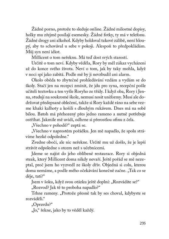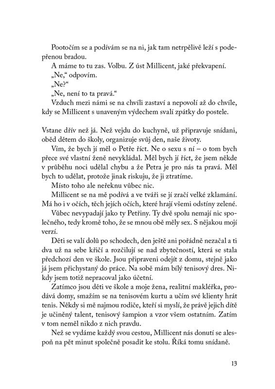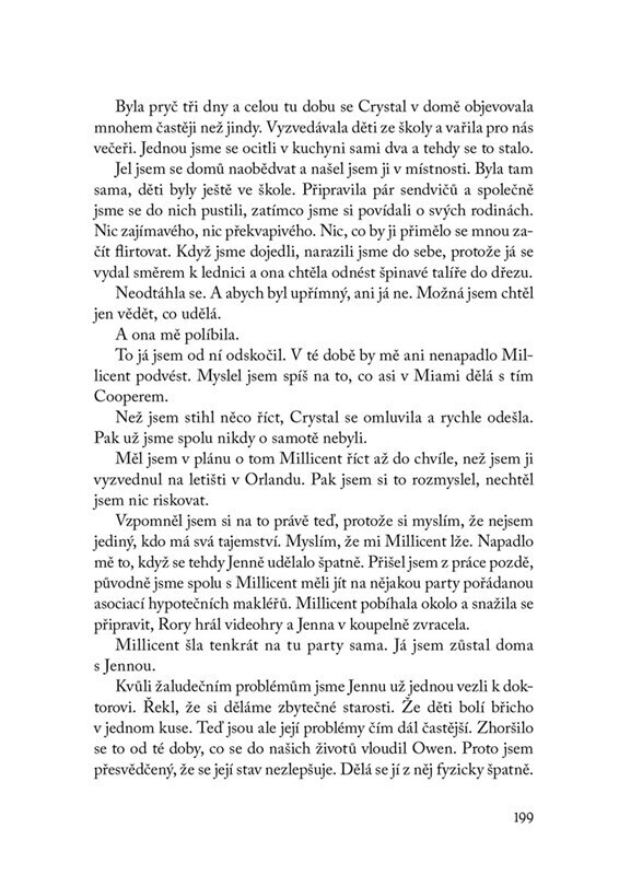 Náš příběh je prostý. Poznal jsem úžasnou ženu, narodily se nám dvě děti, pořídili jsme si velký dům. Poznali jsme všechny svoje tajné sny i temné stránky. A pak jsme se začali nudit… Jsme sousedé, které rádi pozvete na večeři. Protože nás dobře neznáte. Vlastně nás neznají ani naše děti. Možná...