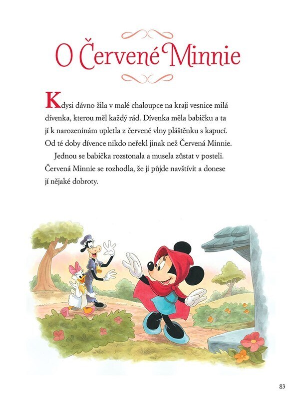 Víte, co vše se stalo za devatero horami a devatero řekami? Třeba to, že chasník Mickey našel v lese chaloupku z perníku, princ Donald jel za svou princeznou přes celý svět, Červená Minnie nesla babičce košíček s dobrotami, a ještě mnohem víc! V úžasně ilustrovaných příbězích na vás čekají...
